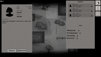 The game was made in 3 days for the "Ihrovary jam", so it may contain many bugs and imperfections. Each profession increases a certain level.